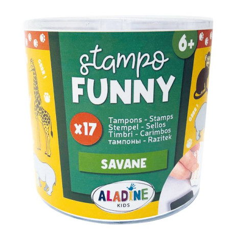 Boite de tampons enfant sur le thème de la savane. Ce kit d'une quinzaine de tampons mousse + encreur permet de développer la créativité et la dextérité des plus petits. Ils vont adorer tamponner leurs animaux préférés et se raconter ainsi des histoires pour développer leur imagination.