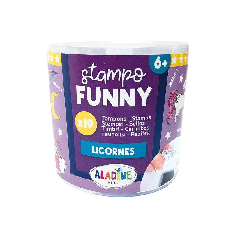 Boite de tampons enfant sur le thème des licornes. Ce kit d'une quinzaine de tampons mousse + encreur permet de développer la créativité et la dextérité des petits et grands. Ils vont adorer tamponner ces motifs sur leurs carnets et se raconter ainsi des histoires. Ces tampons peuvent aussi servir à la réalisation de cartes pour les maîtresses ou la fête des mamans.