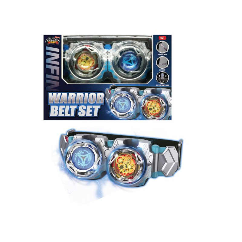 Infinity Nado, qui sera le plus fort ?Deviens un vrai maître des combats avec le coffret Ceinture & Toupies Infinity Nado !Prépare-toi à affronter tes adversaires à tout moment grâce à ta ceinture de combat qui te permet d’emporter tes toupies partout, comme un véritable champion Nado !Chaque toupie incluse possède son anneau d’attaque en métal pour plus de puissance et des performances uniques selon son design : Attaque ou Défense, à toi de choisir ta stratégie pour dominer l’arène.Astuces: tu peux personnaliser ta ceinture en ajoutant d’autres compartiments (*) pour emporter avec toi encore plus de Nado Peut se porter En mode épaule, ou à la taille.Le coffret comprend :1 ceinture de combat ajustable pour transporter tes toupies2 toupies Infinity Nado métalliqueOutil d’assemblage