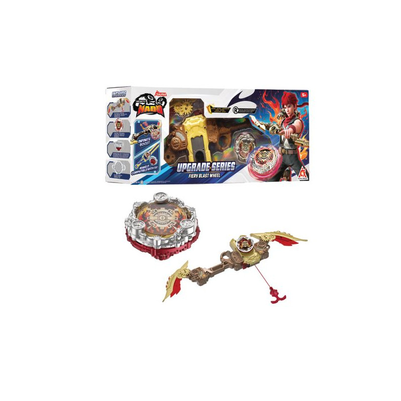 Toupies Infinity Nado, qui sera le plus fort ? Joue avec les toupies Infinity Nado et affronte tes amis dans des combats acharnés !Découvre vite les toupies Infinity Nado 7 avec leur lanceur Arc !Insère ta toupie dans ton arc, puis augmente sa vitesse en actionnant la poignée équipée de la corde.Quand tu es prêt, appuie sur la gâchette pour la propulse dans l’arène (vendue séparément) et défier ton adversaire !La poignée ergonomique assure une prise en main facile.Inclus dans le kit : - 1 lanceur Arc- 1 toupie lumineuse- 1 outil d'assemblage