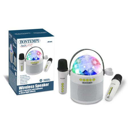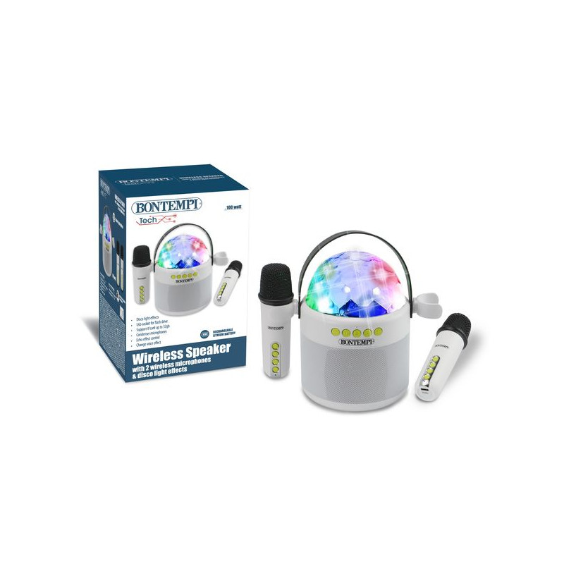 BONTEMPI-ENCEINTE SANS FIL AVEC DEUX MICROPHONES SANS FIL ET BOULE DISCO