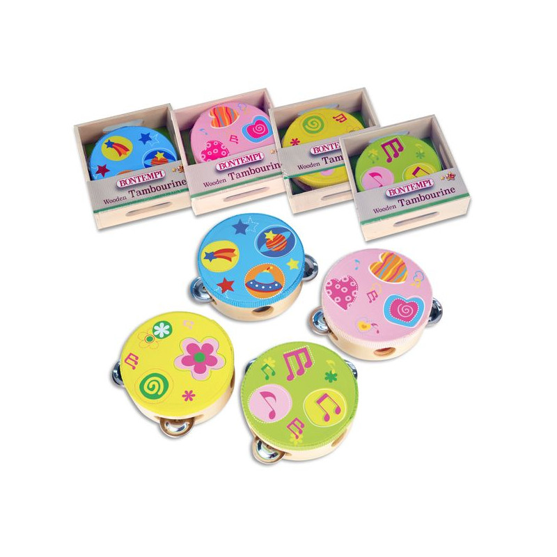Tambourin avec structure en bois avec 6 cymbales • Couleurs assorties • Dim.: 1x1x4 mm