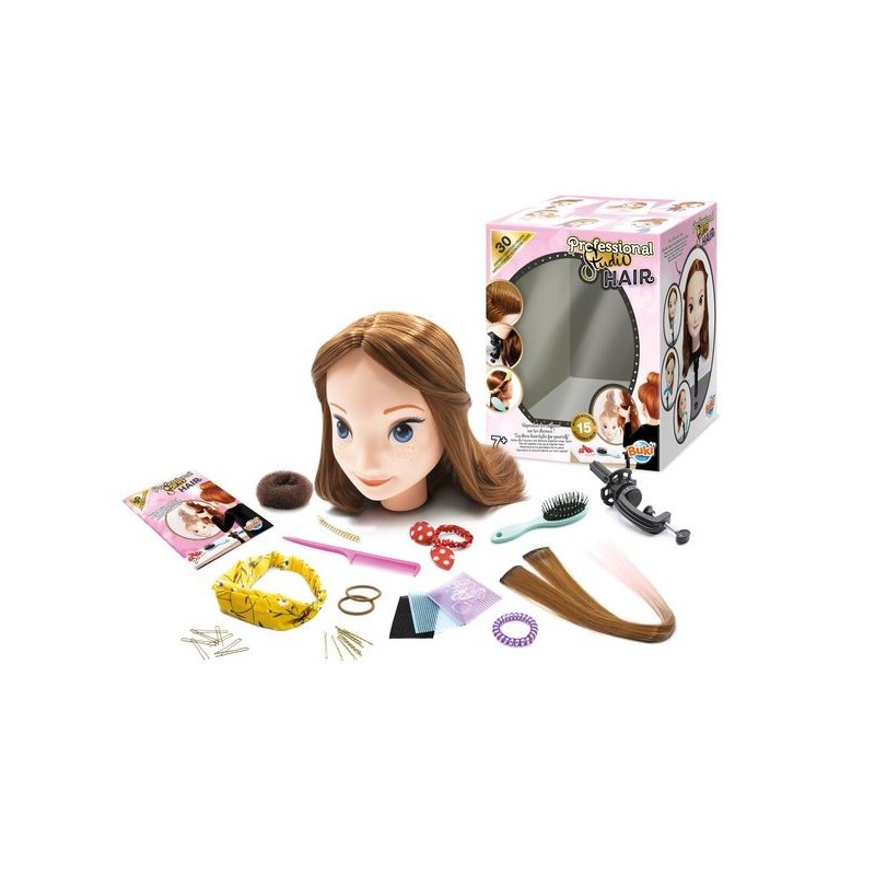 Une tête à coiffer de qualité professionnelle dont l’implantation de cheveux est très réaliste. La tête se fixe grâce à un étau pour éviter qu’elle ne bouge lorsque l’enfant la coiffe. Plus de 15 véritables accessoires inclus: brosse, peigne, pinces, chouchou donut, bandeau, extensions de cheveux avec effet tie dye rose…30 coiffures expliquées pas à pas dans une notice illustrée pour que la petite fille s'entraîne et puisse reproduire les coiffures sur ses propres cheveux !Notice illustrée en couleurs. Dès 7 ans.