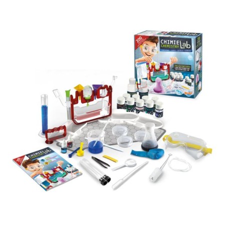 Deviens un véritable petit chimiste avec le laboratoire multifonctions : mélangeur, entonnoir, gouttes à gouttes, verseur, tapis de protection…200 expériences à réaliser avec des ingrédients de la cuisine donc sans danger : densité, mélanges, acidité, réactions acide-base…Notice illustrée en couleurs.Dès 8 ans.
