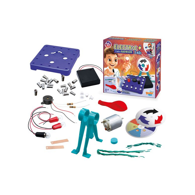 Un coffret pour comprendre les bases de l’électricité ! 25 circuits différents pour apprendre les montages en série, parallèle, les moteurs, lumières et jeux. Contient tous les accessoires nécessaires pour réaliser les montages. Notice illustrée en couleurs. Nécessite 4 piles LR06 non incluses. Dès 8 ans.