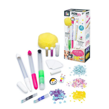 Remplis les marqueurs et le surligneur avec toutes les décorations, puis choisis une figurine ou un pompon ! C'est magique ! Lorsque vous frottez la figurine avec le surligneur, l'encre disparaît des stylos. Le set contient 2 stylos à encre effaçable et 1 surligneur. 2 stylos à encre de rechange sont inclus pour les marqueurs. Instructions illustrées en couleur. À partir de 6 ans.