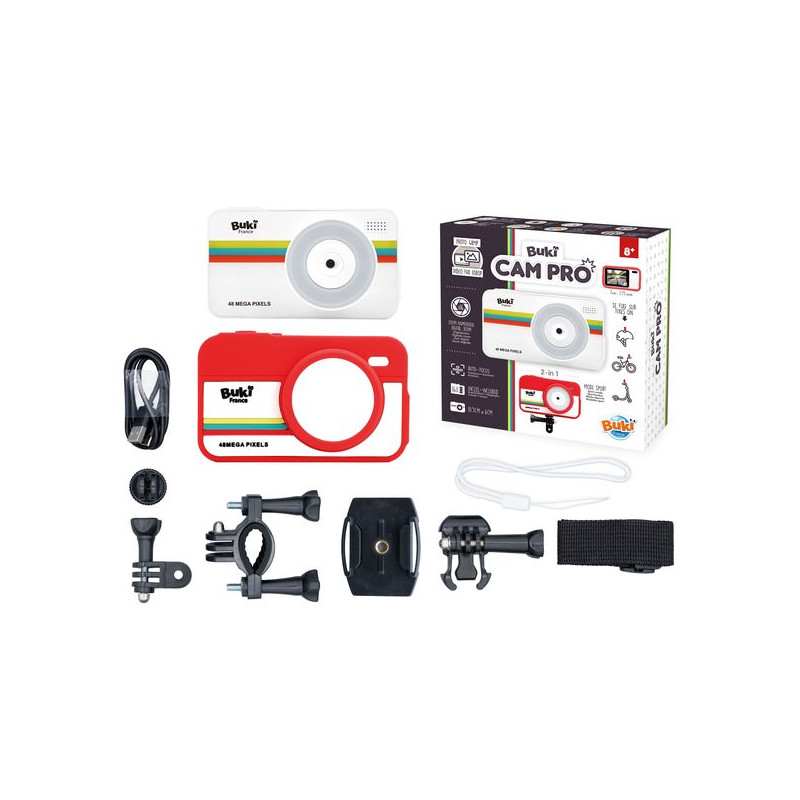 Un appareil photo 2 en 1 avec un mode voyage pour les vacances et un mode sport pour filmer pour tes aventures ! Ajoute la coque en silicone et utilise les accessoires pour fixer l’appareil photo sur une trottinette, un vélo ou un casque. Une carte Micro SD de 16Go est fournie pour enregistrer tes photos et vidéos. Caractéristiques : - Qualité photo : 48MP pour des images ultra-nettes. - Qualité vidéo : 1080P pour des vidéos claires en Full HD. - Auto focus. - Zoom numérique X16. - Ecran couleur 7 cm. - Flash. - Filtres photo/video. - Rechargeable par câble USB-C. Inclus : coque en silicone, accessoires de fixation, dragonne, câble USB-C pour chargement, manuel d’utilisation. Fonctionne avec une batterie Li-Ion 3,7V incluse. Dès 8 ans.