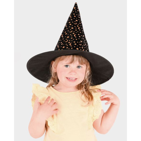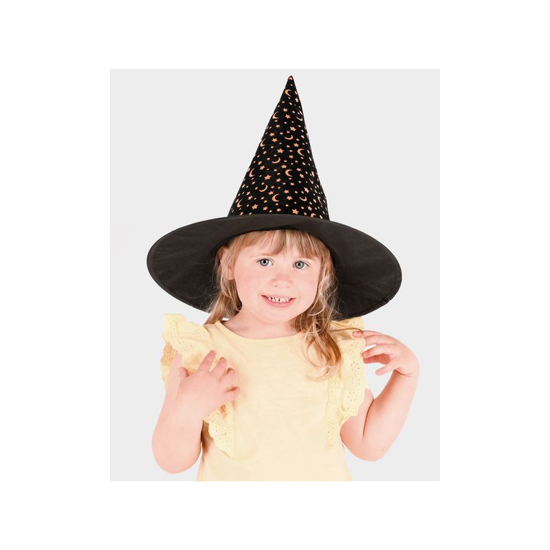DEN GODA FEN-CHAPEAU DE SORCIÈRE NOIR, ÉTOILES ET LUNES DORÉ