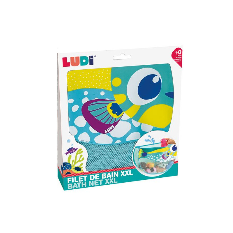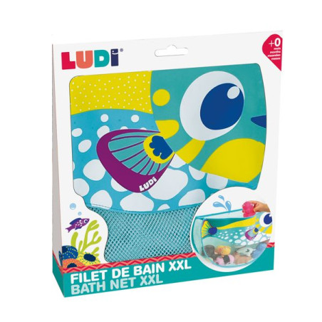 Un poisson malin pour ranger tous les jouets de bain !Avec sa forme de poisson XXL et ses couleurs attrayantes, ce filet de bain rigolo apporte une touche de bonne humeur dans la salle de bain. Solide et généreusement dimensionné, il est idéal pour ranger tous les jouets de bain rapidement et efficacement.Grande capacité et séchage optimalGrâce à son grand filet résistant, ce rangement peut accueillir même les jouets les plus volumineux. Il permet de conserver une salle de bain bien rangée, tout en assurant un séchage rapide grâce à la structure aérée du filet, qui laisse circuler l’air et évite l’humidité stagnante.Fixation simple avec ventouses solidesLe filet se fixe facilement grâce à ses 2 ventouses puissantes, à accrocher sur le carrelage ou les parois lisses de la baignoire. Une fois en place, il reste bien stable, même lorsqu’il est bien rempli.Caractéristiques :Dimensions : 35 x 25 x 5,5 cmForme : poisson XXLFixation : 2 ventouses solidesGrande capacité de rangementSéchage optimal des jouetsMatière : 100 % polyesterUtilisation : carrelage, paroi de douche ou de baignoireUtilisable dès la naissance
