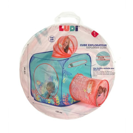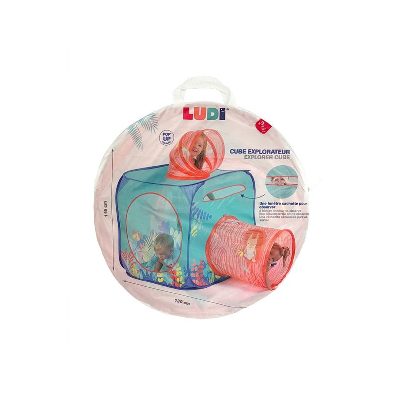 Une cabane pop-up pour jouer, se cacher… et explorer la nature !Avec le Cube Explorateur, les petits aventuriers dès 2 ans partent à la découverte de leur imaginaire ! Cette structure pop-up légère se plie et se déplie en un clin d’œil pour créer un véritable terrain d’exploration à la maison comme en plein air. Grâce à son design inspiré de la nature, entre feuillages, papillons et petits animaux malicieux, chaque recoin devient une invitation au jeu et à la curiosité.Un cube à 4 ouvertures pour des heures d’aventureLe cube se compose de trois parties ingénieuses : une grande ouverture pour entrer dans la cachette, une ouverture ronde pour fixer un tunnel droit, une autre pour ajouter un tunnel en coude, et une longue ouverture façon hublot pour observer le monde extérieur. Les éléments s’assemblent facilement grâce à de petits nœuds malins. Résultat : un espace de jeu immersif qui stimule l’imagination, développe la motricité et encourage les premières aventures en solo ou à plusieurs !Léger, modulable et plein de surprisesParfait pour inventer des histoires, jouer à cache-cache ou se créer un coin lecture, le Cube Explorateur se plie à toutes les envies ! Il est facile à transporter et à ranger, pour suivre votre enfant dans tous ses jeux. En plus, son univers doux et naturel apaise les sens tout en éveillant la curiosité. Une cachette secrète aussi belle que pratique !