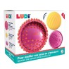L'éveil n'a jamais été aussi drôle !Les balles sensorielles se prêtent à une multitude de jeux. Nervurée, lisse ou à picots, grande ou petite, toutes les balles stimulent le sens du toucher, la dextérité et la coordination des mouvements de Bébé. Leur matière en plastique souple et léger soulage les petites dents de Bébé et garantit une hygiène parfaite !Adapté pour les petits à partir de 6 mois, ce coffret de 3 balles sensorielles attire l’attention de Bébé qui sera intrigué par ces jolies couleurs vives et ses textures. Leur petite taille facilite la prise en main.Dans ce coffret :2 petites balles (Ø 8 cm) nervurées au toucher velouté pour plus de douceur et 1 grande balle (Ø 15 cm) bicolore, à picots tendres pour les massages ou parties de chatouilles.De nombreuses occasions pour jouer, s’amuser et partager des moments de complicité en famille !Caractéristiques : Adaptée pour les enfants de plus de 6 mois.Existe en bleu.Diamètre : 15 et 8 cm.Composition 100 % PVC.Lavable avec un chiffon humide à l'eau.