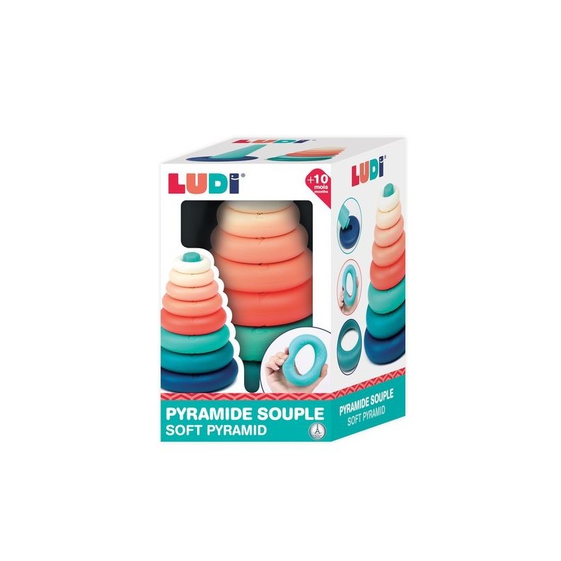 Cette jolie pyramide à empiler amusera beaucoup bébé mais aussi les plus grands en crèche ou à la maison !Ce jeu d’empilement et d’équilibre est composé de 8 anneaux colorés et 1 tige centrale. Faite d’un plastique épais et souple aux couleurs vives, la pyramide attire la curiosité. Les anneaux sont légers ce qui facilite la prise en main des plus petits. Les enfants pourront les porter à la bouche, la matière résiste aisément aux petites dents et se lave très facilement avec un chiffon humide.Les 8 anneaux s’empilent par rang de taille. En les manipulant, les enfants découvrent et comparent les objets. Ils établissent à leur rythme leur propre expérience sensorielle avant de comprendre comment les encastrer dans l’ordre. La tige centrale est en forme de cône. Cette particularité guide les enfants à classer les anneaux du plus grand au plus petit pour pouvoir tout empiler. L’esprit de logique est sollicité !Les différentes tailles offrent à bébé ses premières notions de grandeurs et développent sa mémoire en crèche ou à la maison.Une pyramide ludique et pédagogique !En manipulant les anneaux, les enfants découvriront des motifs gravés tout autour : lettres, animaux, chiffres, formes. Ces motifs se retrouvent également sur le cône central. En grandissant les enfants pourront s’amuser à bien aligner les motifs avec leurs jumeaux. Cela nécessite de la concentration et de la précision ! La pyramide éveille petit à petit la motricité fine et l’acuité visuelle des enfants.Dimensions de la pyramide : 12 x 17,5 x 12 cmComposition : 100% PVC (Polyvinyl Chloride)Lavable avec un chiffon humide.