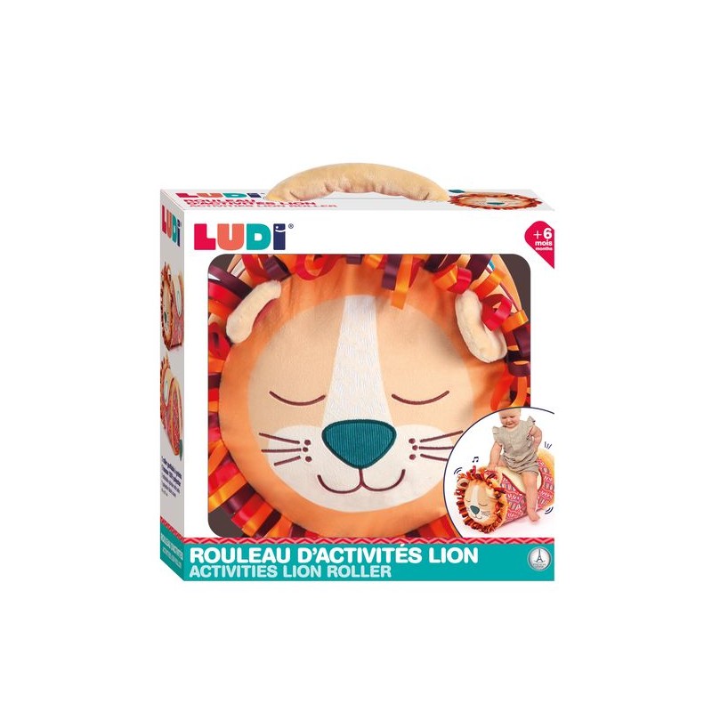 Ce rouleau d'activités Lion de Ludi est un cylindre gonflable recouvert d'un tissu tout doux, conçu pour accompagner bébé dans le développement de sa motricité et de sa coordination. Avec ses textures variées, ses activités sensorielles, son miroir et ses grelots, il promet des heures d'amusement et d'éveil en douceur.