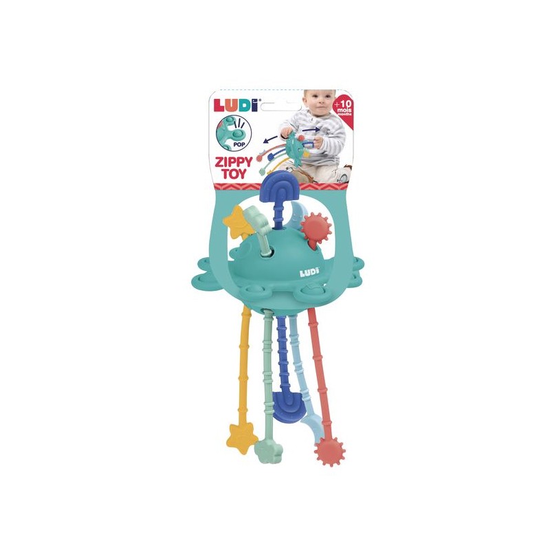 Un jouet de stimulation multisensorielle !Adapté pour les petits à partir de 10 mois, ce grand hochet permet de développer la motricité fine de bébé et entrainer la coordination œil-main. Sa matière souple, sa taille et sa forme ergonomique permettent une bonne prise en main. Bébé pourra soulager ses gencives lors des poussées dentaires grâce aux différents éléments texturés.Chaque corde est dotée d'un motif cranté différent afin de créer des sensations variées de son et de vibration lorsque bébé tirera dessus. Il pourra également développer son habileté à contrôler ses mouvements et à effectuer de petits gestes précis grâce au bulles "pop".Adapté dès 10 mois.Dimensions : 14x21x14 cmComposition : siliconeNettoyage avec un chiffon humide.