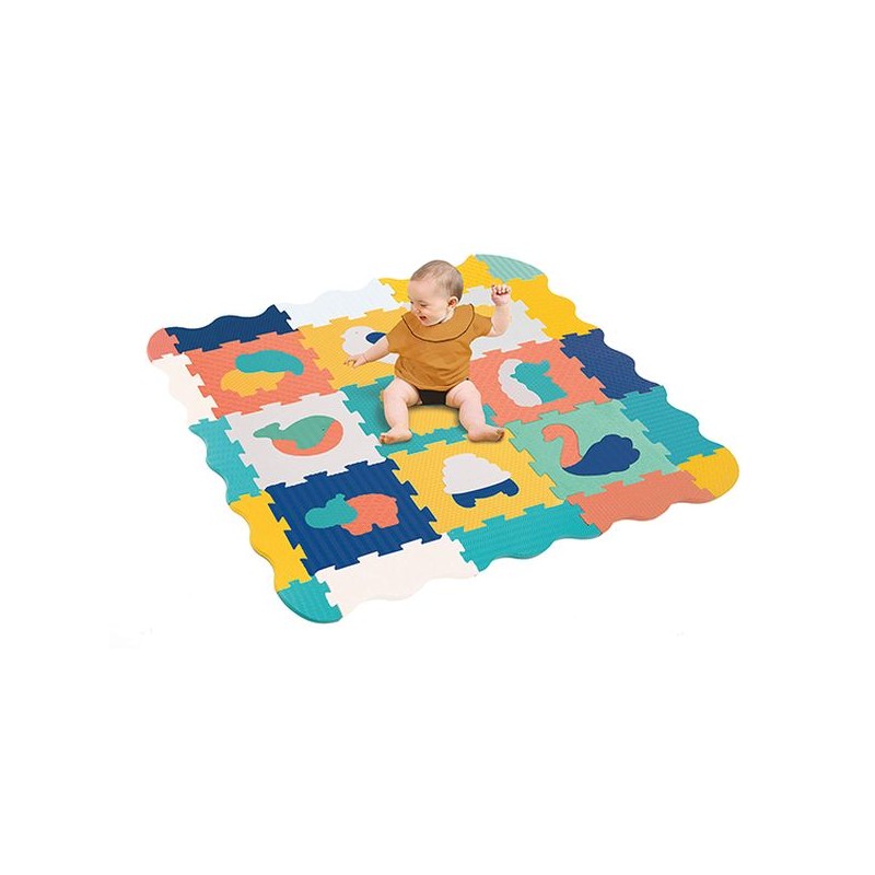 Un Espace Ludique et Sécurisé pour Bébé !Les dalles en mousse de LUDI sont spécialement conçues pour offrir un espace de jeu confortable et sécurisé, parfait pour les premiers pas et jeux de bébé. Confortables, hygiéniques, colorées et aux textures variées, elles stimulent les sens de bébé tout en l'accompagnant dans ses découvertes.Un Tapis de Jeu Multifonctionnel pour les tout-petitsCe tapis en mousse isole efficacement du froid, amortit les chocs et résiste aux petites dents des tout-petits. Ses couleurs contrastées et ses différentes textures éveillent la curiosité de bébé, tout en encourageant le développement de la motricité fine.Les 9 dalles s'assemblent facilement pour former un superbe tapis de jeu de 90 x 90 cm. Les 16 pièces supplémentaires peuvent être ajoutées pour agrandir le tapis ou former des bords. Cette surface de jeu est idéale pour que bébé puisse ramper, s’asseoir, et jouer avec ses jouets préférés en toute sécurité. Solides et confortables, avec une épaisseur de 1,2 cm, les dalles s'emboîtent parfaitement pour créer un espace sécurisé et stable.Grandir tout en Jouant !Au fur et à mesure que bébé grandit, il prendra plaisir à détacher les dalles, retirer les pièces au centre et reconstituer le puzzle. Les 9 animaux détachables offrent une activité d’encastrement amusante et éducative, parfaite pour apprendre les formes, les couleurs, les noms des animaux et développer la dextérité. De plus, ce tapis évolutif permet aux plus grands de réaliser des puzzles en 3D, ajoutant une nouvelle dimension de jeu créatif !CaractéristiquesAdapté dès la naissance.Aérer les dalles 48h avant leur utilisation.Dalles nouvelle génération avec un taux de formamide inférieur à 200ppm.Dalles composées à 100% d'EVALavable avec un chiffon humide. Résistent à la déformation.Dimensions du tapis : 120 x 120 x 1,2 cm.Dimension d’une dalle : 31,5 x 31,5 x 1,2 cm.Les dalles peuvent être utilisées en intérieur (fond de parc, tapis de jeu) comme en extérieur sur une surface plane et non glissante.