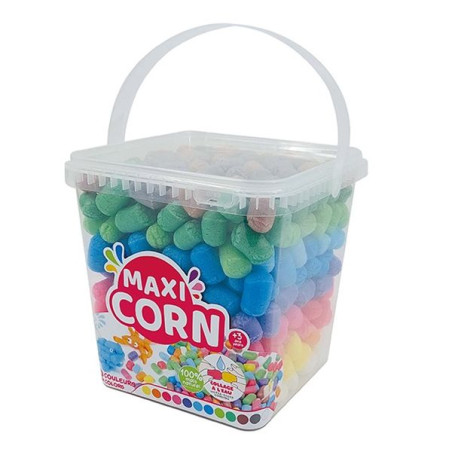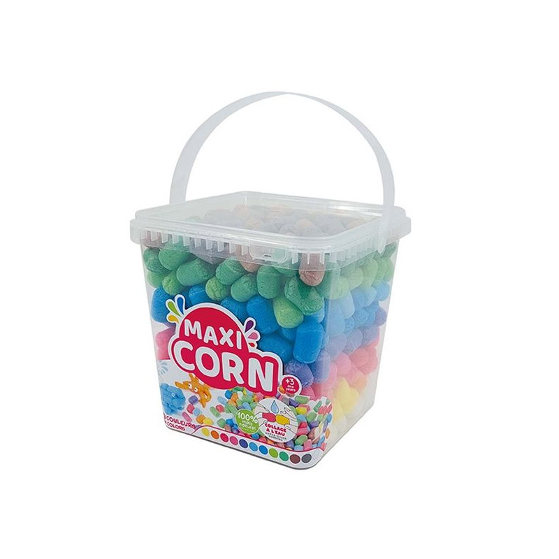 Découvrez environ 380 flocons colorés pour animer un atelier créatif original et ludique.Ce jeu de loisir créatif est évolutif :Les plus petits pourront commencer par trier les couleurs des flocons et à les coller entre eux. En grandissant, les enfants s’amuseront à réaliser des animaux, des personnages, des objets pour jouer… Tout est possible, il suffit de laisser parler son imagination !Les flocons de maïs proposent une manière ludique d’appréhender la notion des volumes, la patience et la dextérité !Une activité ludique et éthiqueLes MaxiCorn sont des flocons multicolores, 100% biodégradable, constitués de maïs naturel, d’eau et de colorants alimentaires. Humidifiez une face du flocon, l’amidon du maïs ressort et sert de colle en séchant. Les flocons de maïs collent sur le papier, le carton, le polystyrène et sur toutes surfaces lisses.Ce seau contient des flocons colorés en vrac, une petite éponge et une notice de montage. Adapté pour les enfants de plus de 3 ansComposition : 100% maïs + colorants alimentairesJeu 100% biodégradable.