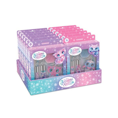 Voici le porte-clés de tes rêves ! Cet ensemble inclut deux tubes de brillants à lèvres parfumés, une jolie breloque et un pompon tout doux… Parfait pour des lèvres étincelantes en toute occasion !