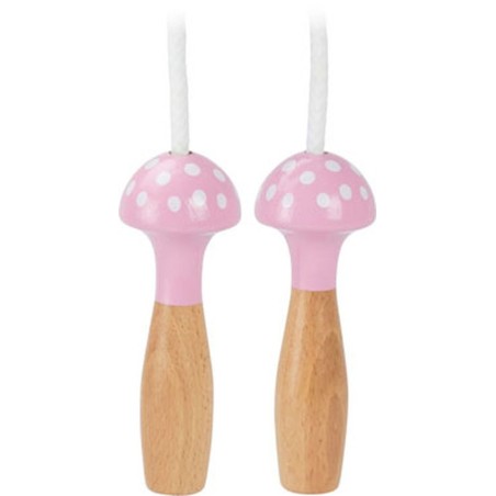 Corde à sauter rose en bois massif laqué. Poignées à pois adaptées aux plus petites mains. Fabrication française.