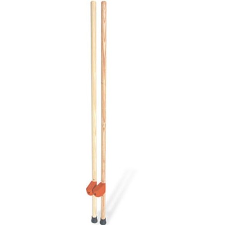 Echasses en bois massif - Repose-pieds rouges réglables (3 positions) - H = 130 cm - Fabrication Française