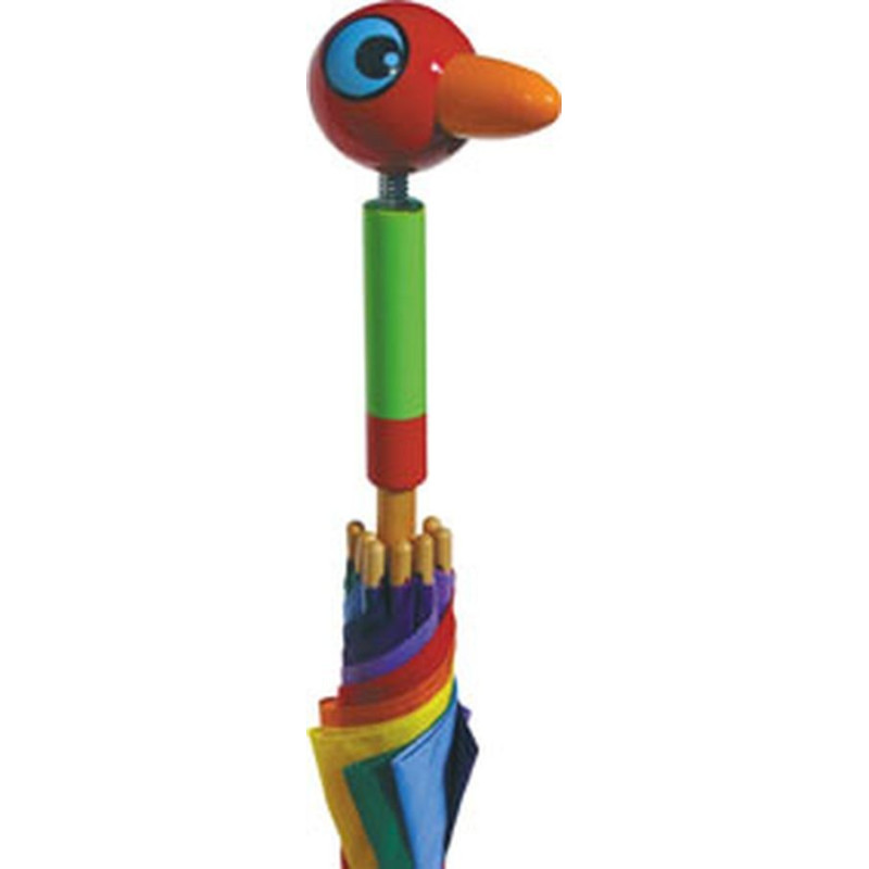 Parapluie avec une tête d'oiseau en bois laqué. Structure en carbone très solide. Fabrication française.