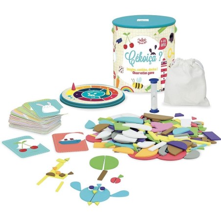 Cékoiça - tirez une carte et faites deviner en moins d'1 minute des mots avec les formes géométriques à disposition. A vos marques ! Prêt ! Créer ! A partir de 4 ans.