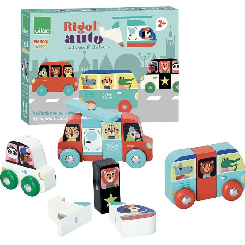 4 véhicules aimantés en bois à recomposer - illustrés par Ingela P. Arrhénius. À partir de 2 ans.