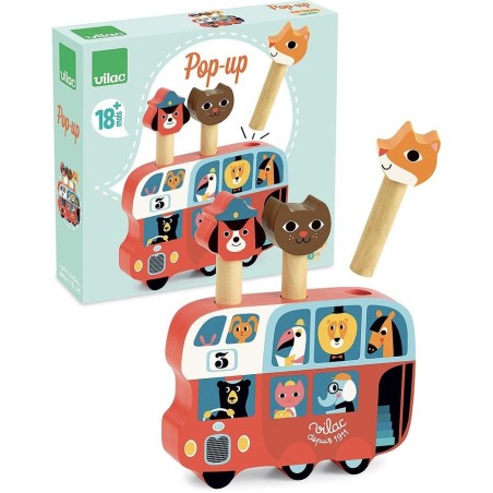 Le Pop-up bus vient enrichir la gamme dessinée par Ingela. Ces 3 personnages sauteurs s'animent quand on leur presse la tête.