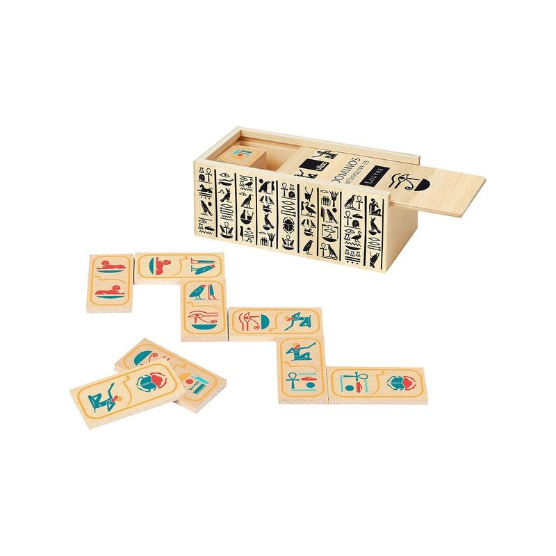 Ce jeu de dominos créé par Vilac est inspiré par les collections du département des Antiquités égyptiennes du musée du Louvre. Présentant la civilisation qui a évolué sur les bords du Nil, depuis la fin de la Préhistoire (vers 4 000 avant notre ère) jusqu'à l'époque chrétienne (à partir du 4e siècle apr. J.-C.), le département fondé par Champollion en 1826, est aujourd’hui riche de plus de cinquante milles œuvres. Il propose au visiteur un circuit à la fois chronologique et thématique pour raconter plus de quatre mille ans de civilisations !