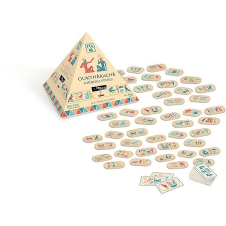 "Oukthêkaché", jeu d'observation et de rapidité créé par Vilac, est inspiré par les collections du département des Antiquités égyptiennes du musée du Louvre. Présentant la civilisation qui a évolué sur les bords du Nil, depuis la fin de la Préhistoire (vers 4 000 avant notre ère) jusqu'à l'époque chrétienne (à partir du 4e siècle apr. J.-C.), le département fondé par Champollion en 1826, est aujourd’hui riche de plus de cinquante milles œuvres. Il propose au visiteur un circuit à la fois chronologique et thématique pour raconter plus de quatre mille ans de civilisations !Serez-vous le plus rapide pour découvrir la pièce associée à la carte ? Gare aux pièges du pharaon...