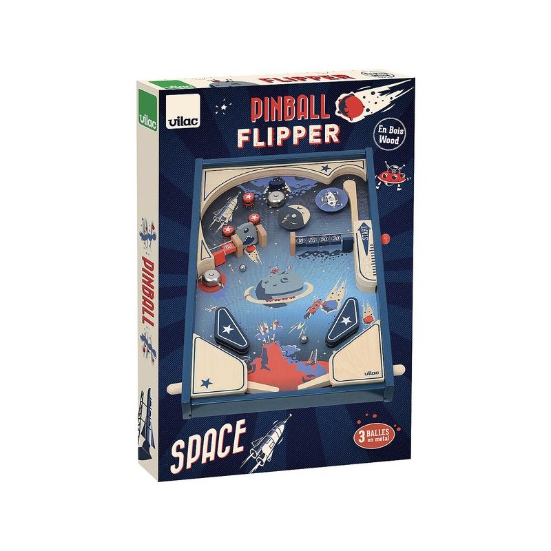 3… 2… 1… embarquement immédiat pour un voyage intergalactique à bord du vaisseau Vilac dans ce magnifique flipper en bois au look vintage. Dégommez les cibles et faites tourner la tête des martiens au milieu des planètes !Un flipper de table en bois pour des heures de jeu pleines d'ambiance. Et cerise sur le gateau, ce flipper fonctionne sans piles, tout est mécanique !