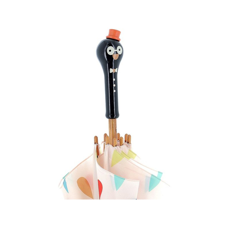 Votre enfant sera tout heureux de sortir les jours de pluie avec son beau parapluie. Après la pluie, le beau temps ! Sous ce parapluie en bois, il fait toujours beau ! Décliné en boite à musique, en hochet et en voiture, ce parapluie en bois laqué fait partie d'une collection d'animaux imaginés et fabriqués dans notre atelier du Jura en France. Une bande de copains composée de René le pingouin, Marcel l'ours, Raoul le lapin, Alice la Koala, Mariette la minette et enfin Lucien le chien. Pour lequel allez-vous craquer ? Fabriqué en France, ce jouet est laqué suivant un procédé unique d'immersion dans des bains de laque qui fait la renommée de notre atelier de fabrication du Jura.
