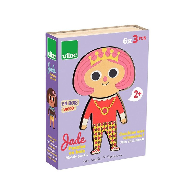 Comment Jade va t'elle s'habiller ? Tenue de piscine ? En reine ou déguisée en lionne ? Et si on faisait un mélange de toutes les tenues… Avec les 6 tenues différentes, les possibilités d'associations sont nombreuses pour des résultats parfois inattendus !!! Ces puzzles d'éveil en bois sont un formidable support pour stimuler la motricité, l'observation et la créativité de votre petit.
