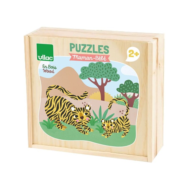 Bébé lionceau va t'il retrouver sa maman ? Et le petit panda, le tigre ou le renardeau ? Ces puzzles d'éveil en bois aideront les petits à développer leur motricité fine, leur observation et leurs donneront l'occasion d'enrichir leur vocabulaire en nommant les animaux et les couleurs.
