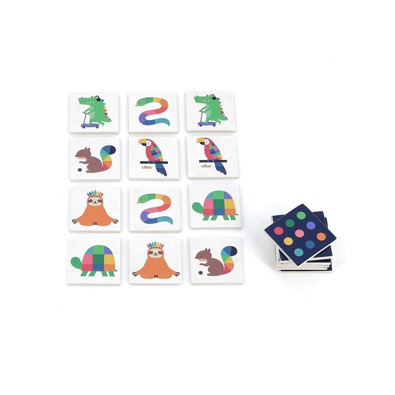 Découvrez notre beau Mémo "animaux" illustré avec talent par Andy Westface : un jeu de mémoire qui permettra aux enfants d'enrichir leur vocabulaire et leur mémoire pour reconstituer les 24 paires ! Retrouvez la baleine, l'écureuil, le flamand rose et bien d'autres compagnons tous aussi mignons les uns que les autres avec leurs couleurs arc-en-ciel... une expérience d'apprentissage amusante et stimulante pour les enfants dès 2 ans. Un jouet durable de 48 pièces en bois présenté dans un coffret.