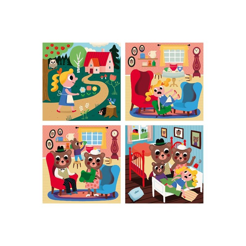 Faites la connaissance de la famille Ours ! Votre enfant revivra l'univers magique du conte classique de Boucle d'Or en reconstituant ces quatre puzzles de 9 pièces dessinés par Ingela P. Arrhenius ! Chaque puzzle reconstitue une scène mignonne et iconique du conte. Nos puzzles sollicitent la concentration, la mémoire et la pensée logique tout en développant la motricité fine. C'est aussi un formidable moyen de développer sa patience et sa persévérance jusqu'à la satisfaction d'avoir reconstitué l'image finale. Des petites pastilles colorées ont été placées à l'arrière des pièces pour simplifier le tri avant de reconstituer les puzzles.