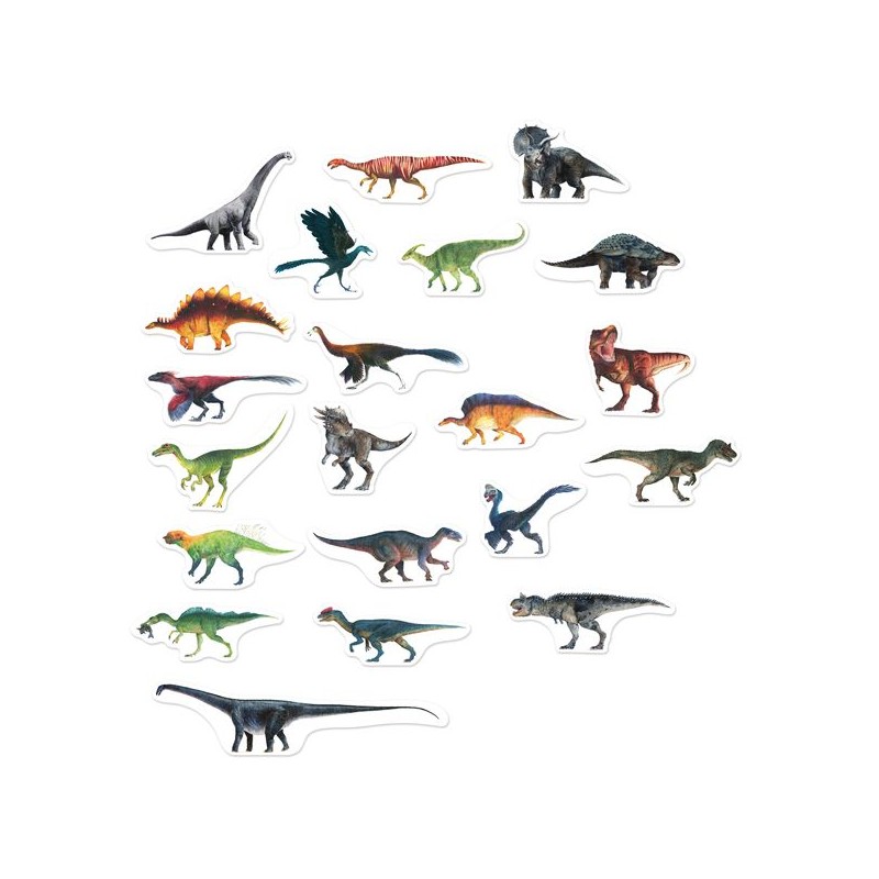 Transformez vos surfaces magnétiques en un vrai musée préhistorique avec nos impressionnants aimants dinosaures dessinés par notre équipe créative dans le Jura en collaboration avec le paléontologue Ronan Allain. Grand spécialiste au sein du MNHN (Museum national d'Histoire naturelle), il a notamment découvert récemment en Provence le Pyroraptor Olympus, voleur de feu de l'Olympe. Ces 20 magnets en bois sont accompagnés de fiches explicatives dans lesquelles vous découvrirez des détails et anecdotes uniques sur l'origine de ces êtres fascinants du crétacé : l'origine de leur nom, pourquoi certains avaient des plumes et d'autres des cornes, quelle était la couleur de leur peau, à quoi servait leur queue ou leur long cou et bien d'autres découvertes. Laissez les enfants découvrir et jouer avec ces créatures incroyables qui ont parcouru notre planète il y a des millions d'années. Une manière originale d'apprendre en s'amusant !