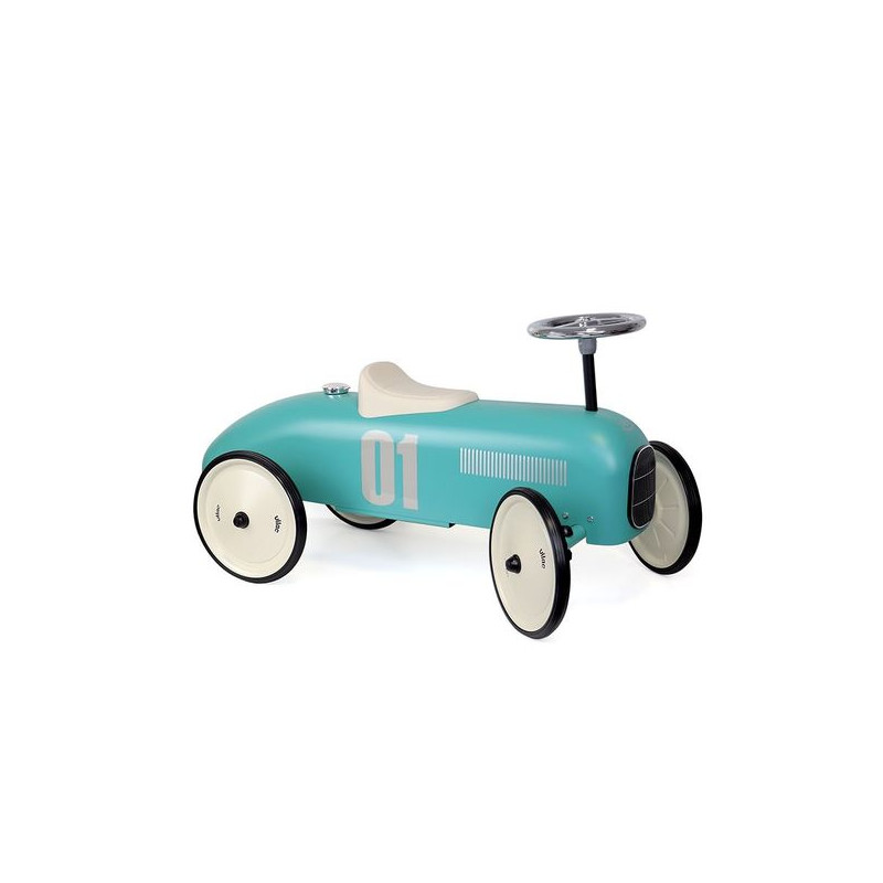"Comme un vent de liberté.Les porteurs sont des jeux parfaits pour les enfants en quête de leurs premières sensations d’autonomie. Au volant de cette magnifique voiture vintage en métal, accompagné de ses parents, votre petit va expérimenter de nouvelles sensations, et découvrir son environnement d’une manière ludique. Libre de ses mouvements, il pourra accélérer, ralentir, tourner, emmener Doudou partout avec lui. Cadeau de naissance plébiscité, cette voiture en métal est un incontournable dans la chambre de bébé et dans la décoration de votre salon !Un jouet design.Avec ses lignes épurées, des coloris « tendance », un volant directionnel et de larges roues en caoutchouc, notre porteur voiture vintage a tout pour plaire aux petits comme aux grands. Pour les parents qui auraient adoré avoir le même quand ils étaient petits, consolez-vous en décorant votre intérieur avec ce bolide iconique. Ce produit s’inscrit pleinement dans l’ADN de notre société, « Vilac, l’art de jouer ».Un porteur voiture adapté.Votre petit va craquer pour ce joli bolide en métal vintage pour faire comme les grands. Il est parfaitement adapté aux enfants à partir de 18 mois : hauteur appropriée de l’assise (28 cm), volant directionnel, larges roues silencieuses en caoutchouc. Nos designers pensent aussi aux oreilles des parents ! Parfaitement stable, ce porteur va permettre à votre petit de se déplacer et d’explorer son environnement. Notre porteur en métal va lui servir à aller où il le souhaite, en coordonnant ses gestes. Il se sentira libre de ses mouvements, et gagnera en confiance et en tonus musculaire. Un jeu parfait pour un bon développement psychomoteur.Ce jouet doit être utilisé sous la surveillance d’un adulte et avec prudence, afin d’éviter les chutes et les collisions. L'angle de braquage du volant est volontairement bridé afin d'éviter que l'enfant ne bascule sur le côté, répondant ainsi aux préconisations de la norme jouet européenne."