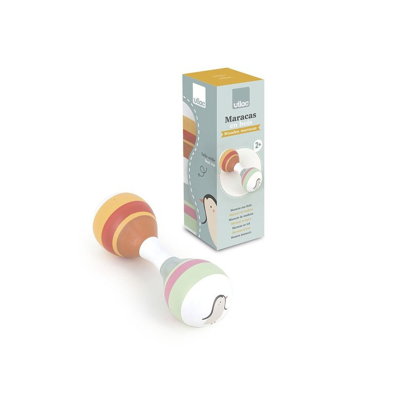 Un univers délicat. Ce jouet musical est joliment illustré par l’artiste Sarah Betz. Elle a rejoint l’aventure Vilac en 2023, et propose un univers tendre et poétique. Illustratrice de talent, elle n’a jamais quitté cette âme d’enfant proche de la nature qui continue de l’inspirer aujourd’hui. Elle a fondé son studio d’illustration Cubeely dans le quartier pittoresque de Montmartre en 2013. Des maracas en bois pour développer la motricité et la coordination. Nos maracas en bois illustrées par Sarah Betz sont idéales pour développer la motricité et la coordination de votre enfant dés 1 an. En les secouant, il va apprendre à contrôler ses mouvements, améliorant ainsi sa coordination œil-main et sa dextérité. La prise en main des maracas en bois est adaptée aux petites mains, ce qui permet à l’enfant de renforcer sa motricité fine tout en s’amusant. Éveil musical et apprentissage des rythmes. Ces maracas en bois sont un excellent outil pour initier votre tout-petit à la musique. Les illustrations colorées de Sarah Betz stimulent l’envie de jouer et d’explorer différents sons, lui permettant de découvrir les notions de rythme et de tempo. En secouant les maracas, il développe son sens du rythme, sa capacité d'écoute et sa sensibilité musicale. L’éveil musical favorise également la créativité et la concentration de votre enfant. Stimulation sensorielle et apprentissage ludique. Notre maracas en bois offrent une expérience sensorielle complète grâce à sa texture en bois et les sons qu'elle produit. En manipulant cet instrument, votre enfant stimule son sens tactile, auditif et visuel. Ce jouet d'éveil encourage également l'expression de soi et la créativité, car votre enfant peut s’inventer des chansons et des rythmes. Adaptée dès 1 an, cette maracas en bois est un jouet éducatif qui accompagne votre enfant dans ses premiers apprentissages de manière ludique et amusante.