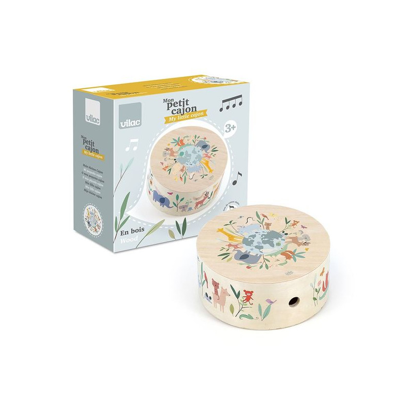 Développement de la motricité et de la coordination. Notre tambour cajón en bois, décoré par Sarah Betz-Cubeely sur le thème des animaux du monde, est un excellent choix pour aider votre enfant de 3 ans à développer sa motricité et sa coordination. En frappant sur les différentes surfaces du cajón, il va apprendre à coordonner ses mouvements, à utiliser ses mains de manière indépendante, et à renforcer sa dextérité. Ce jouet-instrument est idéal pour stimuler la coordination œil-main et développer la motricité fine. Grâce à ce tambour cajón, votre enfant pourra s’amuser tout en améliorant ses compétences physiques et en apprenant à maîtriser ses gestes. Éveil musical et apprentissage des rythmes. Notre tambour cajón en bois est l’outil parfait pour éveiller votre enfant à la musique dès l’âge de 3 ans. Grâce aux magnifiques illustrations de Sarah Betz sur le thème des animaux du monde, ce tambour capte l’attention de votre tout-petit et l’encourage à découvrir les sons et les rythmes. En jouant sur le cajón, il apprend à reconnaître et à créer des rythmes, ce qui stimule son écoute, son attention, et sa mémoire auditive. Ce tambour cajón devient ainsi un support d'apprentissage amusant qui développe sa sensibilité musicale et lui permet de s'épanouir à travers la musique. Stimulation de la créativité et expression personnelle. Offrir à votre enfant un tambour cajón en bois, c'est lui offrir un espace de créativité et d'expression personnelle. Inspiré par les animaux du monde, ce tambour invite votre enfant à explorer, inventer des sons, et laisser libre cours à son imagination. En jouant, il développe sa confiance en lui et s’exprime à sa manière, tout en s'amusant. Ce tambour cajón devient alors bien plus qu’un simple jouet : il est un compagnon qui encourage votre enfant à découvrir le monde de la musique et à exprimer sa créativité au quotidien. Un univers délicat. Ce jouet musical est joliment illustré par l’artiste Sarah Betz. Elle a rejoint l’aventure Vilac en 2023, et propose un univers tendre et poétique. Illustratrice de talent, elle n’a jamais quitté cette âme d’enfant proche de la nature qui continue de l’inspirer aujourd’hui. Elle a fondé son studio d’illustration Cubeely dans le quartier pittoresque de Montmartre en 2013.