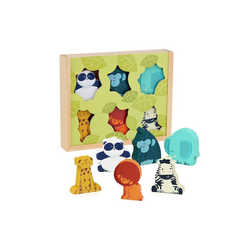 Des figurines en bois pour stimuler l’imagination. Ce coffret de 6 figurines en bois sur le thème des animaux sauvages est idéal pour encourager l’imagination des enfants dès 3 ans. Avec des animaux emblématiques comme le lion, le zèbre ou le gorille, votre enfant pourra s’inventer de nombreuses histoires. Ce type de jouet laisse une grande place à la créativité et permet à votre enfant de créer des mondes fantastiques tout en explorant les relations entre les personnages. Développement des compétences motrices et sociales. Manipuler les figurines en bois aide également à renforcer la motricité fine et la coordination œil-main de votre enfant. Le fait de tenir, de déplacer et de faire interagir les personnages contribue à développer sa dextérité. De plus, ce coffret encourage le jeu coopératif et l’interaction sociale. En jouant avec d'autres enfants ou avec des membres de la famille, votre enfant apprend à partager, à coopérer, et à gérer des scénarios d’imitation, développant ainsi des compétences sociales importantes. Un jouet durable et éducatif. Fabriquées en bois, nos figurines sont robustes et adaptées aux petites mains. En plus d’être amusant, ce jouet permet de sensibiliser votre enfant aux animaux sauvages. Il offre aussi des heures de jeu éducatif, loin des écrans, et encourage l’autonomie. Ce coffret de figurines devient rapidement un jouet indispensable pour le développement et l’amusement de votre enfant.