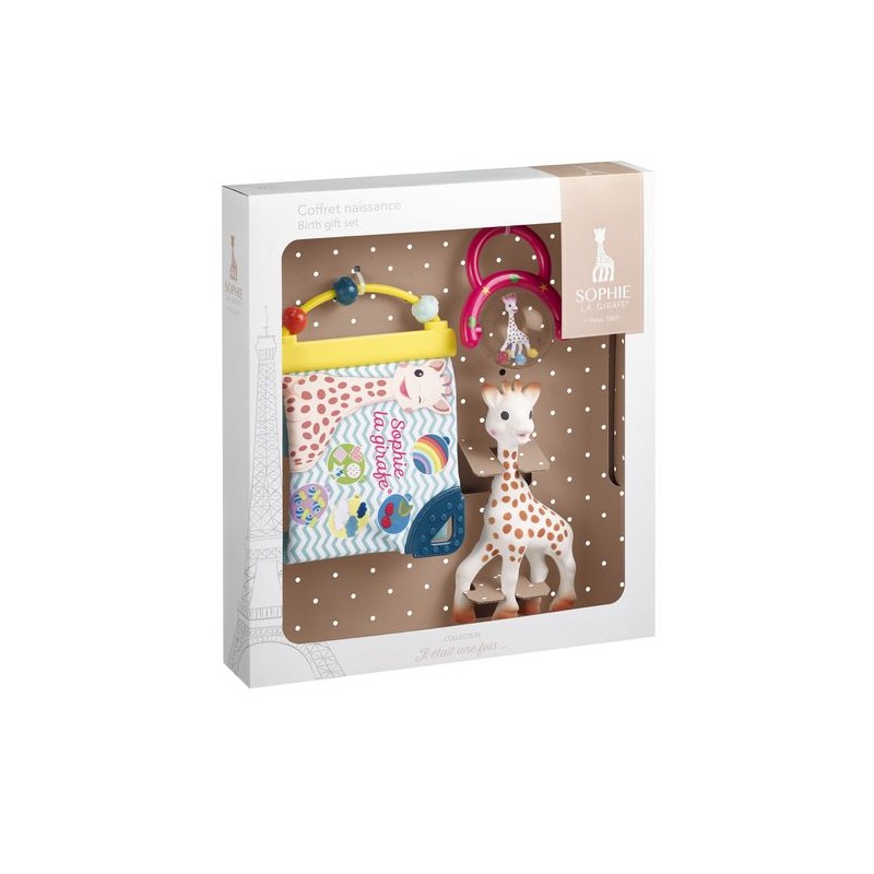 - Livre d’éveil : le premier livre évolutif Sophie la girafe et riche en activités pour éveiller les sens de bébé. De nombreuses activités sont à découvrir: une poignée-boulier avec 3 billes à faire coulisser, une page avec effet « papier froissé », un bruiteur caché sous la tête de Sophie, 4 parties en plastique souple et multi-texturé à mordiller.
