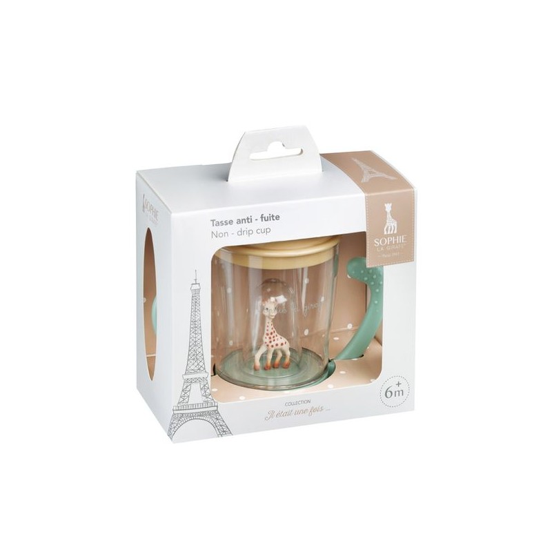 C’est rigolo de regarder Sophie à travers l’eau ! A l’envers… à l’endroit, aucune fuite n’est possible ! Dotée d’un bec ergonomique qui favorise la succion naturelle comparable au biberon, cette tasse est idéale en transition du biberon au gobelet. Le système anti fuite avec valve permet de boire sans goutter et le couvercle assure une hygiène parfaite. Equipée de deux poignées avec picots pour une bonne prise en main.