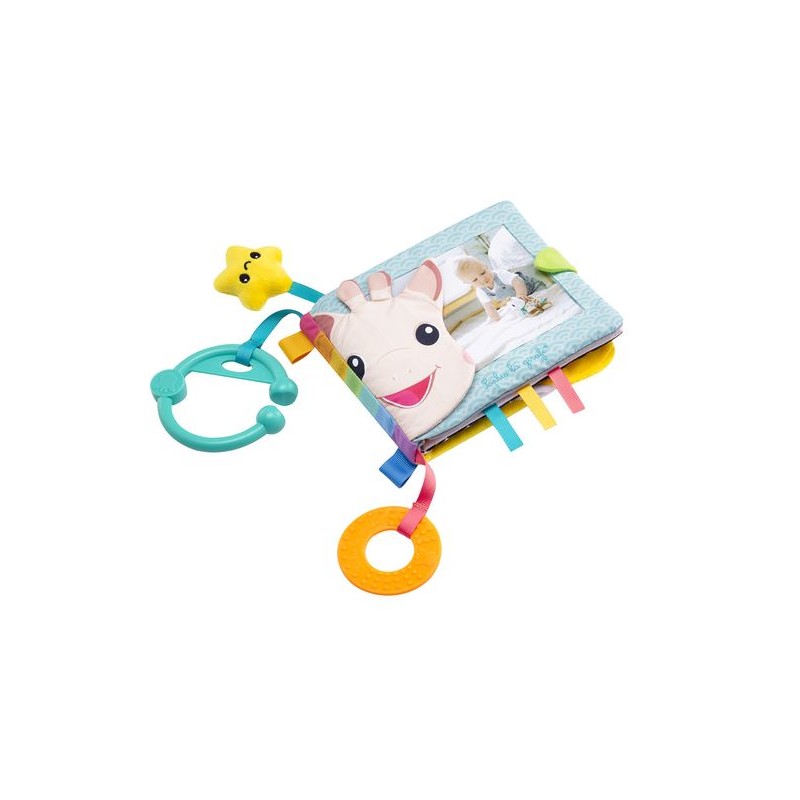 Un album photos à l’effigie de Sophie la girafe pour que bébé puisse emmener des photos de ses proches partout avec lui!A la fois album photos et jouet d’éveil, de nombreuses activités sont à découvrir au fil des 6 pages qui mettent tous les sens de bébé en éveil :La vue : des couleurs vives, des contrastes noir/blanc, L’ouïe : un grelot, du papier froisséLe toucher : des matières variées à parcourir.Le goût : un anneau de dentition à mordiller pour soulager les gencives. L’album photos peut contenir jusqu’à 6 photos au format 15 x 10 cm.