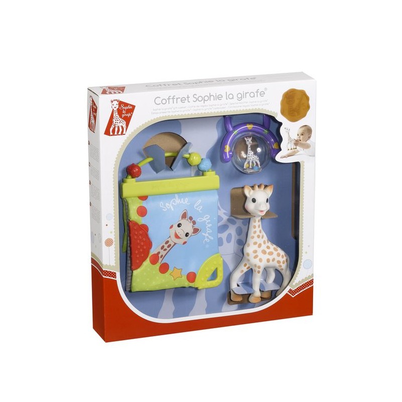 Idéal pour souhaiter la bienvenue à bébé ! Un coffret riche en découvertes et en activités pour éveiller les sens de bébé. Comprend : Sophie la girafe, le premier jouet de bébé. Un hochet poignée pour une bonne prise en main. Un livre d'éveil avec de nombreuses activités.