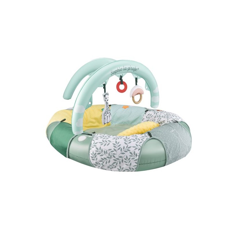 - Dispose d'une arche avec des activités amovibles pour encore plus de jeux ! - Anneau de dentition - Miroir - Bulles - Papier croustillant- Confort : siège rembourré en mousse pour bébé.