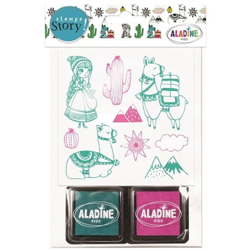 Ontdek de beste verhalen van uw kinderen met onze Stampo Story. Een set van 9 postzegels met als thema Zuid-Amerika en de Peruanen. Het kind stempelt en verzint zijn eigen verhalen. Leuk en praktisch, de set wordt geleverd met 2 gekleurde stempels. 8 thema's beschikbaar voor meer verbeelding.