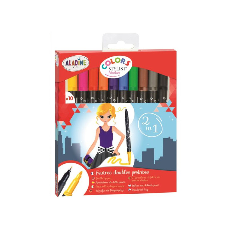 Geef kleur aan uw stylistische creaties met deze dubbele set van 10 voor dubbel gebruik. Kleuren Stylist marker voor het tekenen en kleuren van uw stijlen.