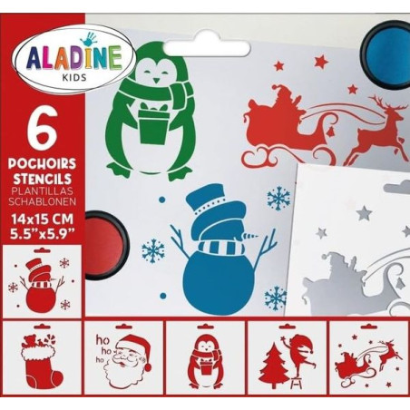 Kit de 6 pochoirs enfant de 15*14 cm sur leur thème préféré : Noël. Pingouin, lutin, Père-Noël, bonhomme de neige… ils vont adorer dessiner, peindre ou réaliser avec les encreurs minos de jolis dessins sur des supports papier, textile ou bois, à customiser selon leurs envies. Ils peuvent aussi décorer les vitres de la maison avec ces motifs de Noël pour les fêtes de fin d'année.