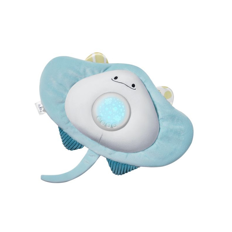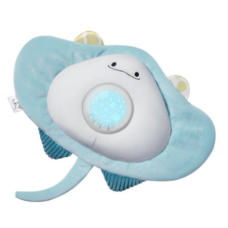 Nachtlampje Projector – Dromerige MantaDompel je baby onder in een zachte en geruststellende onderwaterwereld met het Nachtlampje Projector Dromerige Manta, een lichtgevende metgezel die is ontworpen om te kalmeren, gerust te stellen en te verwonderen.Dankzij de prachtige projecties geïnspireerd op de zeebodem verandert de kamer in een echte oceaan van rust. Perfect om het inslapen te begeleiden en een ontspannen sfeer te creëren.De ultrazachte stof maakt het een knuffelvriendje dat je baby graag zal omarmen, terwijl de afneembare elektronische module het mogelijk maakt om het licht- en geluidsgedeelte eenvoudig te verwijderen, zodat de knuffel gemakkelijk gewassen kan worden en optimale hygiëne gegarandeerd is.De Dromerige Manta biedt een complete zintuiglijke ervaring:Rustgevende verlichting: 3 kleuren naar keuze – rood, groen of blauwGevarieerde muziek: 8 zachte liedjesKalmerende geluiden: 5 witte geluidenBoeiende verhaaltjes: 6 korte verhalenVolume instelbaar op 4 niveaus, zodat het perfect kan worden aangepast aan de sfeer van de kamerEen echte lichtgevende en muzikale cocon, ontworpen om je baby te begeleiden naar rustige en zachte nachten.