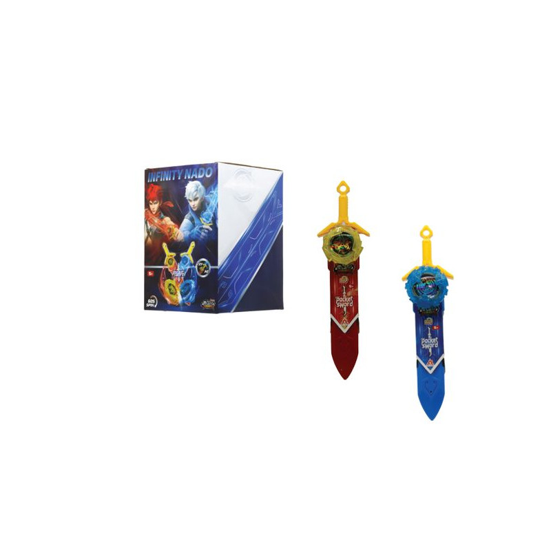 Infinity Nado, wie wordt de sterkste?Bevrijd de kracht onmiddellijk!Plaats je Nado-tol, druk op de knop…en maak je klaar voor een razendsnelle en superleuke lancering!Eenvoud, snelheid en sensatie gegarandeerd bij elk duel.De set bestaat uit een zwaard-lanceerder van 25 cm en een Nado-tol